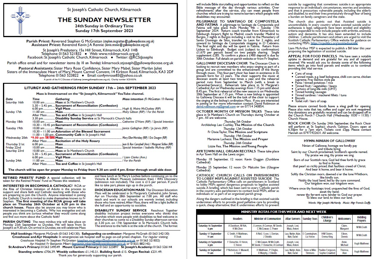 St Joseph’s Newsletter – 3rd September 2023_   Newsletter 20230903 A 22nd Sunday in Ordinary time